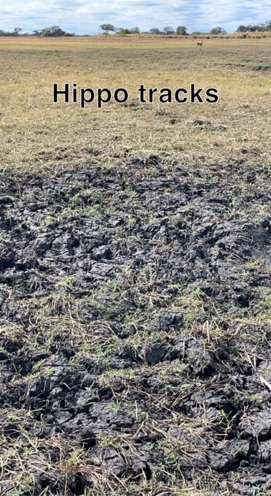 We were headed to a place called the Garden of Eden for our morning tea, which was a pretty lofty name for a place and one that sets a pretty high bar. It is a natural watering hole part of a river that seems to have the perfect profile for wildlife to come grab a drink and settle in for a moment. It did not disappoint. HIPPOS! There was a raft of them in the water and a young male on the shore who was doing his best to show us his teeth and explain why we needed to keep our distance. We had every plan to do so. Hippos have one baby at a time and I can tell you that to me, the baby hippos are the cutest babies in Southern Africa. I could list all of the animals that were here but it would take up a bit of the page so I will let the pictures do that. I’m really enjoying this tea business.